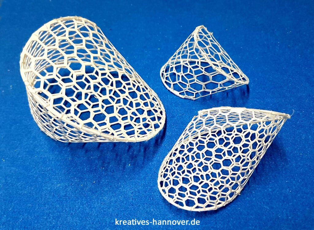 Heute möchten wir Euch ein neues Experiment aus unserer Werkstatt vorstellen – ein Projekt, bei dem digitales Design und handwerkliche Arbeit ineinandergreifen. Mit unserem Zeichenprogramm haben wir eine organisch wirkende Form für einen Lampenschirm entwickelt. Auf Basis dieser digitalen Vorlage wurde die Form anschließend in verschiedenen Größen aus Polystyrol präzise mit unserer CNC-Fräse ausgeschnitten und